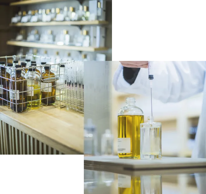 お客さまだけの、特別な香りになるようにスタッフと話しながら香りを調合します。たった一滴で変わる、香りの奥深さをぜひご体感ください。